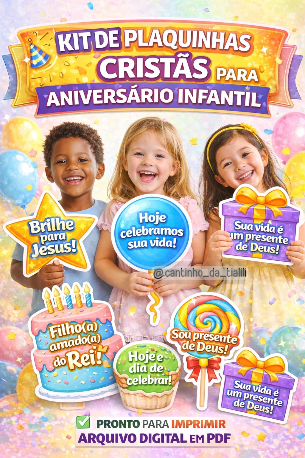Plaquinhas Divertidas Cristãs para Aniversário Infantil